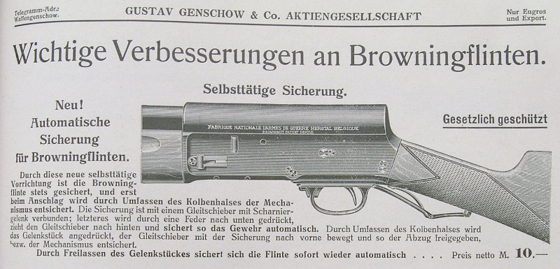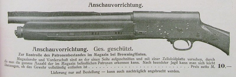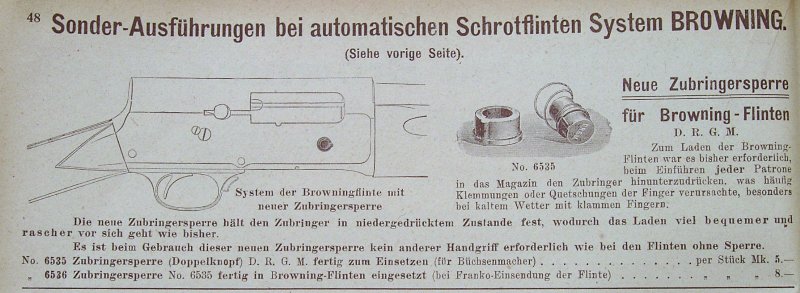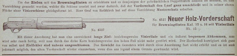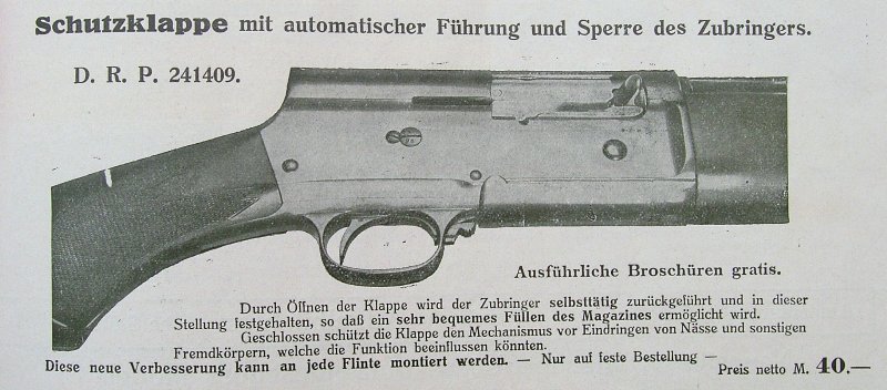 OK, when Browning's Automatic shotgun appeared on the market in Germany, it caused a stir - like in most other countries also. The hunting journals of the time period until the outbreak of WWI are full with articles about pro/contra of the gun. Well, most German hunters just loved it. Consequently, it was a big hit here. Due to sales success, other tried to get their share of the cake by promoting improvements and accessories for the A5. I like to present some of these, which were sold also with success. At least, some of them.