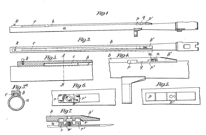 4/ the "cartridge counter", also invented and sold by G. Teschner & Co. This is a very simple device: a slot is cut in the forearm and the magazine tube, the slot is closed with a piece of celluloid. Now you can see the cartridges in the magazine. Images are from the 1913 Genschow & Co. (Geco) catalog and from the journal of German hunting association ADJV, dated May 03, 1911. There you can see also a square recoil spring, it seems?